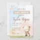 This design features a soft pastel watercolor background and a cute teddy bear holding a bouquet of flowers, perfect for a sweet and loving celebration. Ideal for spring or nature-themed baby showers.