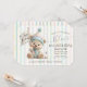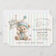 Celebrate a little one's milestone with this charming birthday invitation featuring a pastel-striped background, gold star accents, and an adorable teddy bear in party attire. Whimsical and warm, this design sets the tone for a joyful first birthday celebration filled with games, treats, and festive cheer.