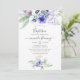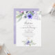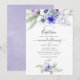 Um convite para o batismo floral em tons de violeta pastel com tipografia elegante.