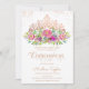 Elegante e na moda, flores florais cor-de-rosa, roxo e más com verde e estrutura dourada Convites de quinceanera. A escolha perfeita para comemorar o aniversário de 15. Fácil de personalizar o modelo de convites quinceanera com todos os seus próprios detalhes de eventos.