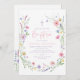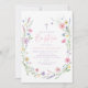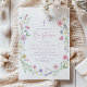 This sweet baptism invitation features soft, hand-painted watercolor florals arranged in an airy meadow wreath design.