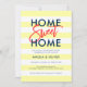 Convite de festas de aquecimento doméstico com as palavras "Home Sweet Home" em azul sans serif e laranja trendy script tudo contra um fundo amarelo e branco pastel. A placa tem uma cor azul de trás. Veja aqui outros novos itens home https://www.zazzle.com/rosewoodandcitrus/new%20home?rf=238364477188679314 Personalize-o substituindo o texto do marcador de posição. Para obter mais opções, como alterar a fonte e seu tamanho/cor ou o espaçamento entre letras, clique no botão "Personalizar". *Observe que a Marca d'água do Zazzle que aparece na visualização de zoom NÃO aparecerá no produto impresso final. © Rosewood e Citrus