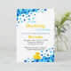 Celebre a chegada iminente do patinho fofo com a decoração de chá de bebê temática de patinho de borracha com bolhas azuis. O design apresenta um patinho de borracha amarelo e vermelho fofo e três cores de bolhas azuis misturadas (azul claro, azul, azul real) na splash. Você pode clicar no botão personalizar para modificar este modelo. Além disso, você pode optar por alterar o tipo de papel se desejar.