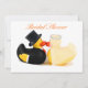 Noiva e patos de borracha de noivo se beijando. Chapéu de cima e rabo com pérolas. Convite de casamento ou cartão que pode ser personalizado com seu próprio texto, nomes, data e imagens.
