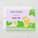 Um design bonitinho com dois patos entre folhas bonito e verde. Uma fronteira de listras divertidas. Personalize com as informações do seu chá de fraldas conforme desejado.