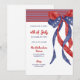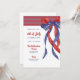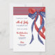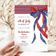 This trendy and patriotic 4th of July party invitation features a red, white, and blue ribbon bow with stars. Modern stripes and elegant script add a stylish touch to this American design. Celebrate any kind of Independence Day BBQ, backyard party, or a fancy affair with these stunning invites!