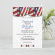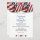 Este bunting vermelho, branco e azul patriótico ao longo da parte superior e estrelas correspondentes ao longo da parte inferior, colocou a design deste convite de casamento. O fundo de ambos os lados é um design vermelho, branco e azul macio. O convite atrás corresponde ao design. Personalize a design com seus detalhes de casamento nos campos de modelo. Também disponível como download em "Escolha seu formato".
