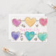 Patterned Hearts Valentine Notecard hand painted in watercolor with the words "Happy Valentine's Day" in pink on the front.