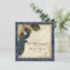 FORMATO DE CONVITE QUADRADO - Esta coleção de casamento antiquada inspirada na vintage tem um conjunto completo de produtos e pode ser criada de várias maneiras coloridas. Este design consiste num pavão estático sobre um ramo de árvore, onde se pintava três penas de pavão e sobre uma gravura de anjo, espirais, escrita manual antiga, pergaminho de rendas pintadas manualmente e uma bela cor damasco de arte original. A cor de fundo pode ser alterada para corresponder ao seu casamento.
