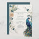 Um convite de casamento temático de pavão, customizável e projetado com bom gosto, combinando a elegância e a natureza régia do Pavão Azul com a alegria de uma celebração de casamento.