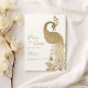Este maravilhoso design de convite de casamento de glam apresenta branco luxo e ouro pássaro pavão real elegante Casamento Salve as Datas convites perfeitos para qualquer cerimônia elegante e sofisticada. Este belo design geométrico é ideal para o casal de tendências e na moda. Personalize este design com sua mensagem e informações personalizadas. Todas as designs são impressas.