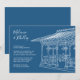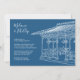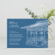 Fácil de personalizar modelo de casamento. Casamento de destino Cidade de Nova York, convite de cerimônia de casamento no gazebo do Pavilhão das Senhoras do Central Park. Monocromático com ilustração de silhueta branca deste popular gazebo de casamento localizado perto do lago na área superior oeste do Central Park no coração de NYC.