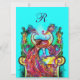 Convites PAVÕES NO MONOGRAMA vermelho azul verde do amor