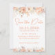 Convites Peach Beige Flowers em Branco Salve a placa de dat
