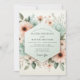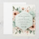 Delicate peach and teal blossoms cascade across this design, evoking a soft, romantic mood. Ethereal watercolor strokes blend muted greens and blush tones for a dreamy, painterly aesthetic, perfect for an enchanting occasion.