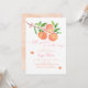 Este adorável convite apresenta pêssegos pintados manualmente com aquarelas, pessegueiros e folhas vibrantes.