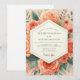 Lush peach blossoms and delicate greenery create a romantic and elegant backdrop. This design evokes a soft, natural beauty perfect for a springtime or romantic affair. The artwork features abundant floral blooms with a gentle watercolor feel.
