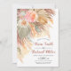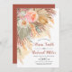 Pêssego coral aquarela flores de cacto e folhas de terracotta mole floral, convite para casamento. Esta elegante design mostra um arco e flores de cacto aqueira de cor de pêssego com suculência e folhas nos cantos superior esquerdo e inferior direito e seu texto em terracota e preto. Atrás do quadro há um plano de abertura de aquarela em cor suave de terracotta.