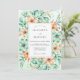 This design features a soft and romantic aesthetic, blending mint green foliage with warm peach blossoms. Delicate vines and petals create a fresh, seasonal atmosphere perfect for springtime. The color palette of pastel orange and seafoam green evokes a sense of breezy elegance. Peach blossoms are displayed alongside lush greenery.
