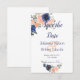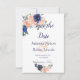 Personalize este pêssego e o floral azul de aquarela, salve a data para se adequar.