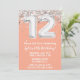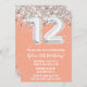 Pêssego 12 de prata e branco Convite para 12 convites de aniversário de prata branca com escrevendo moderno de escrita e balões de folha divertida.
