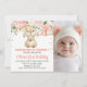 Convites Peach Floral Bunny Fotografia primeiro aniversario