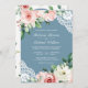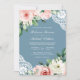 Convites Peach Floral Lace Dusty Blue Código QR Casamento