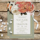 Convites Peach Mimosa Blooms Floral Sage Weding