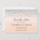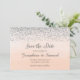 Salve o anúncio de data com design falso prateado brilhante e fundo de cor laranja de pêssego ombre.