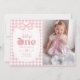Peach Rosa Gingham Primeiro Convite Fotográfico de Aniversário