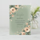 Delicate peach blossoms and leafy greenery adorn this serene design. The artwork evokes a gentle, romantic atmosphere with its soft color palette and painterly style. This motif is perfect for a dreamy, elegant occasion.