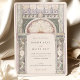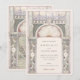 Este maravilhoso convite para o casamento de Art Nouveau apresenta uma ilustração intrincada e inspirada em vintage com delicados detalhes florais e um elegante motivo de pavão. A bela estrutura de ornamentado, inspirada pelas artes decorativas do início do século 20, mostra verduras suaves, dourados quentes e tons de terra, criando um eterno e uma estética sofisticada. A parte da frente do convite apresenta elegantemente os nomes do casal e os detalhes do casamento numa fonte serif refinada, harmonizando perfeitamente com os elementos botânicos e arquitetônicos detalhados. As costas continuam o design luxuoso, fazer este convite como uma verdadeira obra de arte. Perfeito para casamentos antigos, botânicos ou clássicos, este convite evoca um senso de grandiosidade e romance. Impresso em papel de alta qualidade com opções personalizáveis, este convite é ideal para casais que buscam um pacote único, artístico e de artigos de eterno.