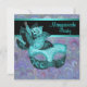 Convite de festas azul-azul de pavão púrpura com máscara púrpura azul-penteada mascarada.