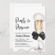 Pearls & Prosecco Bridal Shower Invitation. This elegant and simple design blends classic charm with modern sophistication. The centerpiece features a single champagne glass finished with a chic black bow, adding a stylish and slightly dramatic touch.