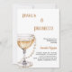 Um convite moderno, na moda e glamouroso para um Chá de panela de Pérolas e Prosecco. Um fundo branco com um vidro de estilo de deco artístico com bolhas e pérolas. O nome é escrito com um moderno estilo escrito à mão. Personalize e adicione os detalhes da sua festa.