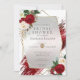 Chá de panela | Traço de tinta metálica fluorescente e moderna falsa, a preto e a negro, a negrito e diferente, e emparelha-os com uma armação geométrica. Brilhante, cor vermelha e branca marfim, com folhagem verde-sábio nos cantos de uma armação geométrica de fio de ouro que tem um centro opalescente translúcido mostrando o ousado traçado de tinta escarlate na diagonal da pintura do escarlate na página. Este design de chá de panela tem certamente uma declaração - Fonte contemporânea para seus detalhes. Design criado para o BarefootBride™ por © WhimsicalArtwork™ Personalize texto, estilo de letra, cor e tamanho. Criamos que esta modelo é para facilitar a personalização com suas próprias informações. Esta é parte de um Conjunto de Papelaria de Casamento com casamento, chá de fraldas e outros artigos de papelaria.