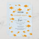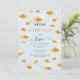 Uma bela mão desenhou peixes dourados nadando em design de água. Um exemplo de peixe dourado de peixes nadando em água de aquário. Um design ideal para festas de aniversário de peixes dourados. Encontre decor de festa de aniversário de peixe dourado e favores nesta coleção de designs.