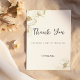 Este belo casamento Obrigado O convite para design apresenta convites florais adoráveis, luxuosos, simples, brancos e de ouro que são perfeitos para qualquer cerimônia elegante e sofisticada. Este requintado design de flores com brilho dourado é ideal para o casal moderno e na moda. Personalize este design com sua mensagem e informações personalizadas. Todas as designs são impressas.