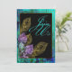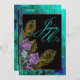 Criar um evento memorável começa no princípio com estes convites originais e bonitos do casamento da pena do pavão. O quadro de madeira da textura da grão de turquesa vibrante ajusta um contexto rústico para o buquê exquisitely de entrelaçamento da pena do pavão do ouro, da lavanda e do aqua. Um fundo preto austero faz todo o direito do pop das cores fora da página, e uma mensagem de ondulação de "junta-se nos" termina fora o design com apenas o flourish direito para esta escolha lunática, elegante do convite.