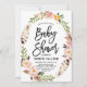 Convite de Chá de fraldas inspirado no boho, com penas de aquarela e flores, cor-de-rosa-dorso. Elegante e caprichoso, perfeito para chás de fraldas primavera. Este design está disponível para outros eventos.