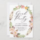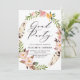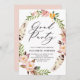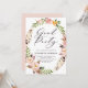 Convite de festa de formatura inspirado no boho, com penas de aquarela e flores, cor-de-rosa-dorso. Elegante e caprichoso, perfeito para a graduação em primavera. Este design está disponível para outros eventos.