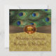 Convite Elegante de Casamento com penas de pavão verde-azul e dourado. Observe que: Fita e âmbar são as imagens impressas que não são reais. Você pode ajustar o texto de acordo com suas necessidades.