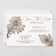 Duas belas penas de pavão inspiradas em ouro escuro, com um burro de azul ao redor das suas plumas escuras de ouro, aparecem nos cantos superior esquerdo e inferior direito. Eles são colocados contra um fundo branco estrelado que faz as penas pop e modelos personalizados aparecerem entre eles. Personalize o texto para se adequar à sua ocasião especial. Este é ideal para um chá de panela muçulmano, híndi, tradicional indiano ou Henna inspirado; "salve a data"; casamento, aniversário ou evento corporativo.