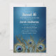 Azul metálico Elegante Doce 16 convite de aniversário com penas pavão de ouro brilhante
