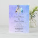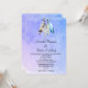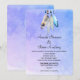 Um convite de casamento com tema nativo americano. Um design em aquarela com quatro penas delicadas e macias enfeitadas juntas penduradas na borda superior. O fundo é uma textura suave em aquarela roxa azulada. Um motivo tribal com tema de estilo nativo americano. Personalize com os detalhes do seu casamento.