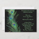 Use estes convites elegantes do casamento do peafowl verde convidar seus amigos e família a seu casamento. Este design da pena do pavão em seus cartões adicionará um toque especial a seu casamento temático do pavão. Esta vida imóvel dos três olhares das penas que surpreendem contra o fundo preto. As cores da pena do pavão são vibrantes e tão elegantes. Cada convite vem com um envelope branco.