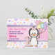 Convites Penguin Cutie- Rapariga Primeiro Aniversário