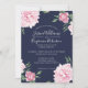 Aprecie seus convidados com estes convites florais de casamento com peões pintados cor-de-rosa em um fundo de marinho.