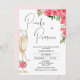 Vidro de Champanhe Moderno Peões Vermelhos Pérolas Prosecco Chá de panela pérolas modernas chá de panela prosecco com dois peões vermelhos arranjos florais, posição caligráfica moderna e um copo de champanhe alto com uma corda de pérolas.