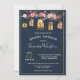 Este design de casamento floral romântico e chico apresenta lanternas românticas de cor aquática e lanternas românticas de cordas e elegantes corais, ouro rosa, pincel, pêssego, e pénicas cor-de-rosa e outras flores em um fundo azul marinho com armações de ouro. Fácil de personalizar com suas próprias informações de casamento, e a cor de fundo também é personalizável. Estas cartas são perfeitas para o casamento romântico do celeiro, casamento de fazenda, ou qualquer lugar rústico e romântico. Design de T.K. em frente. A coordenação dos artigos de casamento está disponível na minha coleção de Peonies Elegantes e Lanternas Russas Marinho e Coral Floral na minha loja Zazzle: